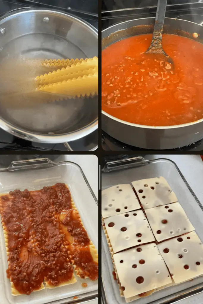 - Begin by cooking the lasagna noodles according to the package instructions.
